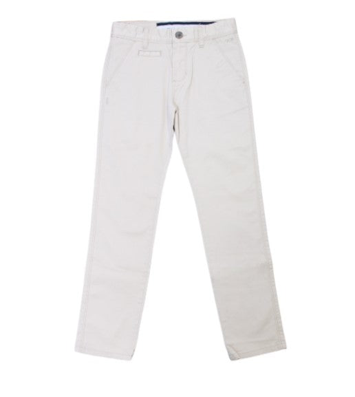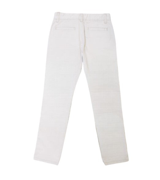 Pantalone bimbo in cotone. Tasca america, chiusura frontale con bottone e zip.