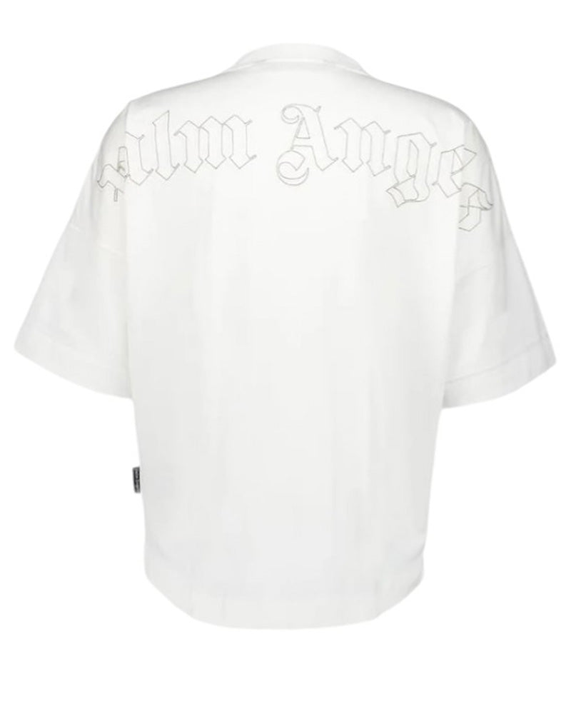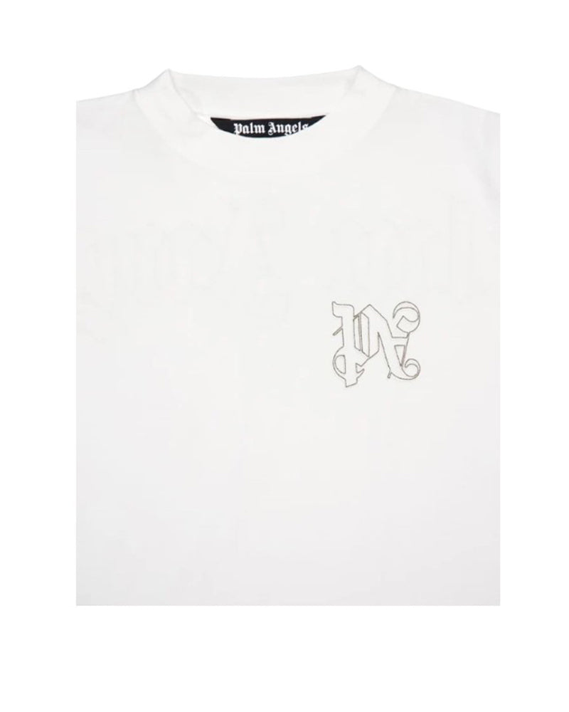 Palm Angels T-shirt oversize in cotone, con collo tondo e monogramma e logo ricamati. 100% cotone per un comfort impeccabile e uno stile ricercato. Perfetta per aggiungere un tocco di eleganza al tuo look casual.