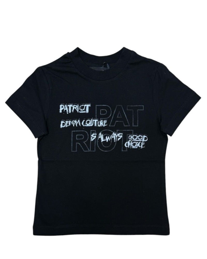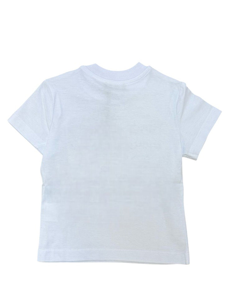 T-shirt realizzata in fresco cotone, girocollo, maniche corte, logo e stampa in contrasto sul davanti.