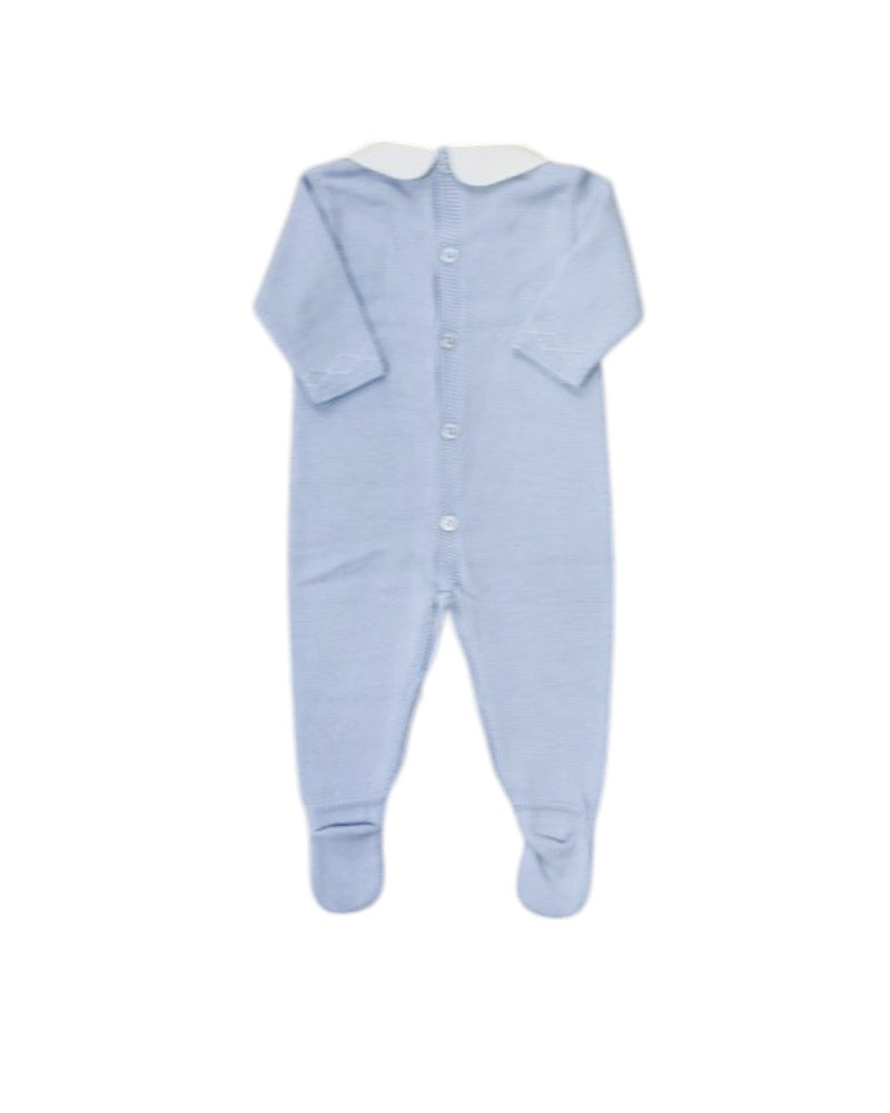 Tutina in filo  Con Ricami Paz Rodriguez! Ricamata con rombi e nodini, colletto in  misto lino è perfetta per neonati che amano la sfida. La sua chiusura e con bottoncini retro   articolo abbinata   alla copertina 031-122243