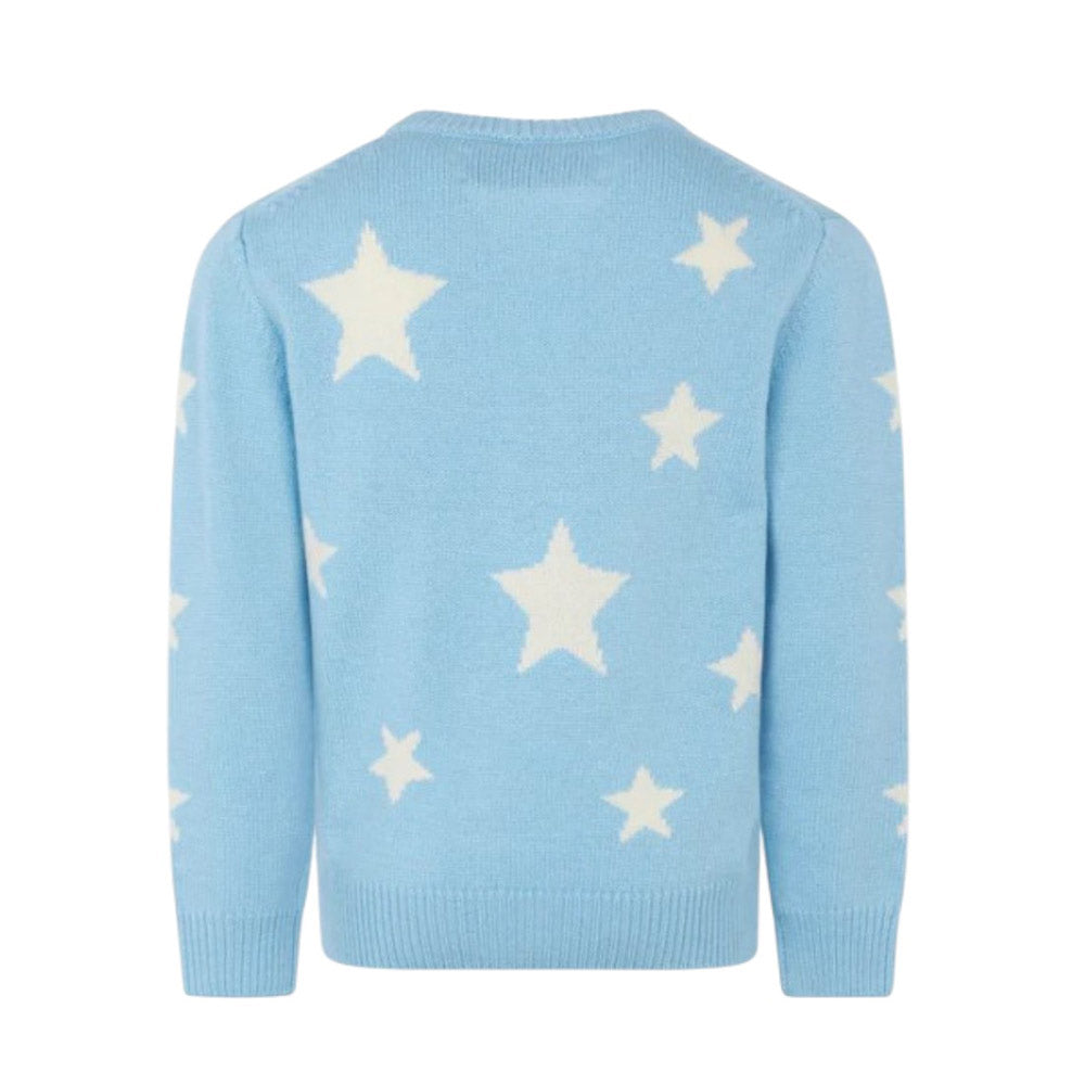 Maglia realizzata in misto lana e cashmere da bambina. Presenta collo rotondo, maniche lunghe e finiture a coste. È decorata con stampa jacquard stelle bianche e