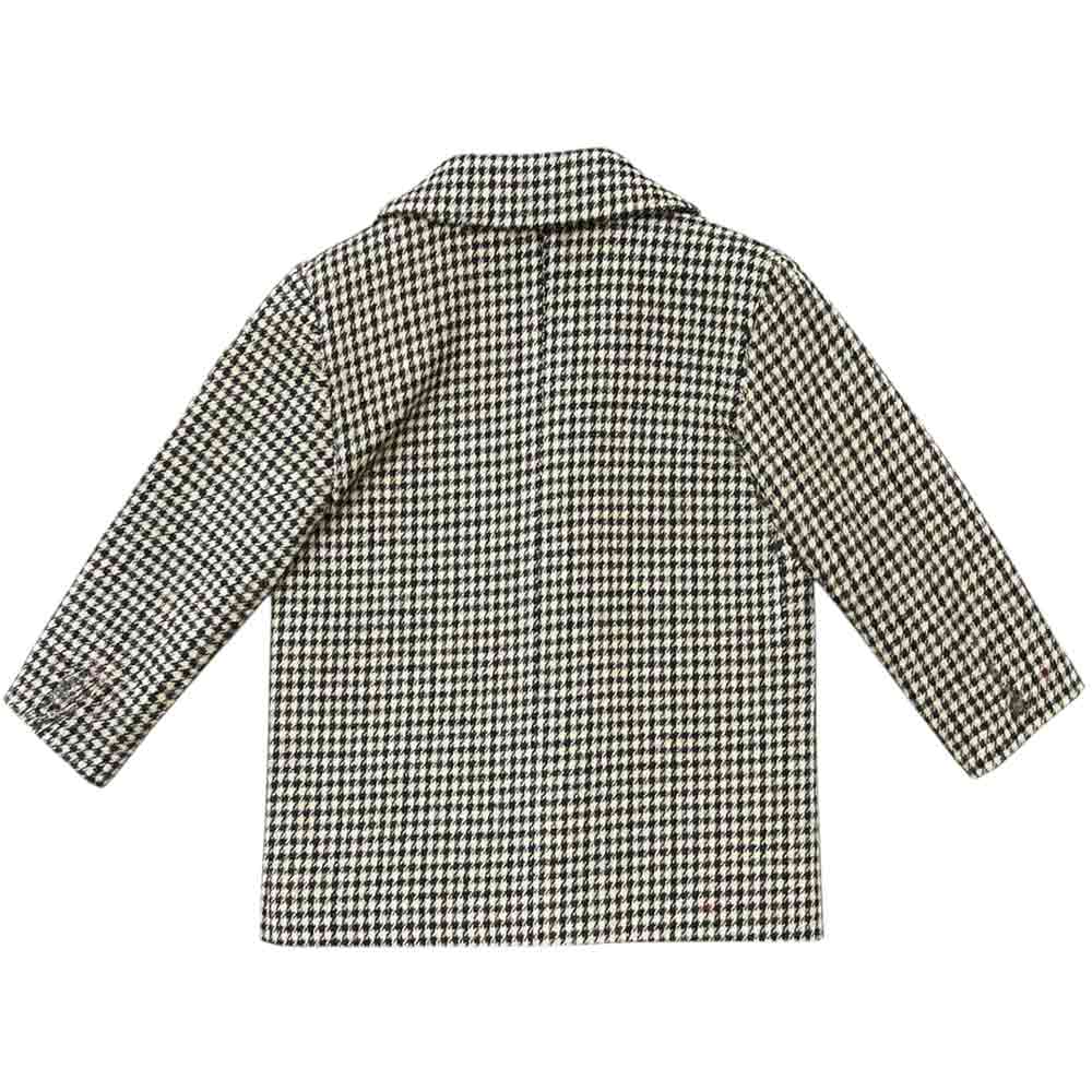 Giacca monopetto realizzata in misto lana, caratterizzata da fantasia Pied de Poule, colletto a revers, chiusura frontale con bottoni, maniche lunghe, due tasche con patta decorative sul davanti e orlo dritto.
