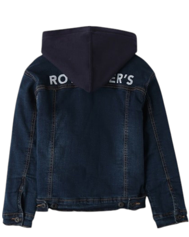 Giubbino da bambino realizzato in denim di cotone. Presenta design imbottito, cappuccio in felpa rimovibile, maniche lunghe, chiusura frontale con bottoni e due tasche con patta applicate sul petto. È decorato con patch logo applicata sul petto e con logo stampato sul retro.