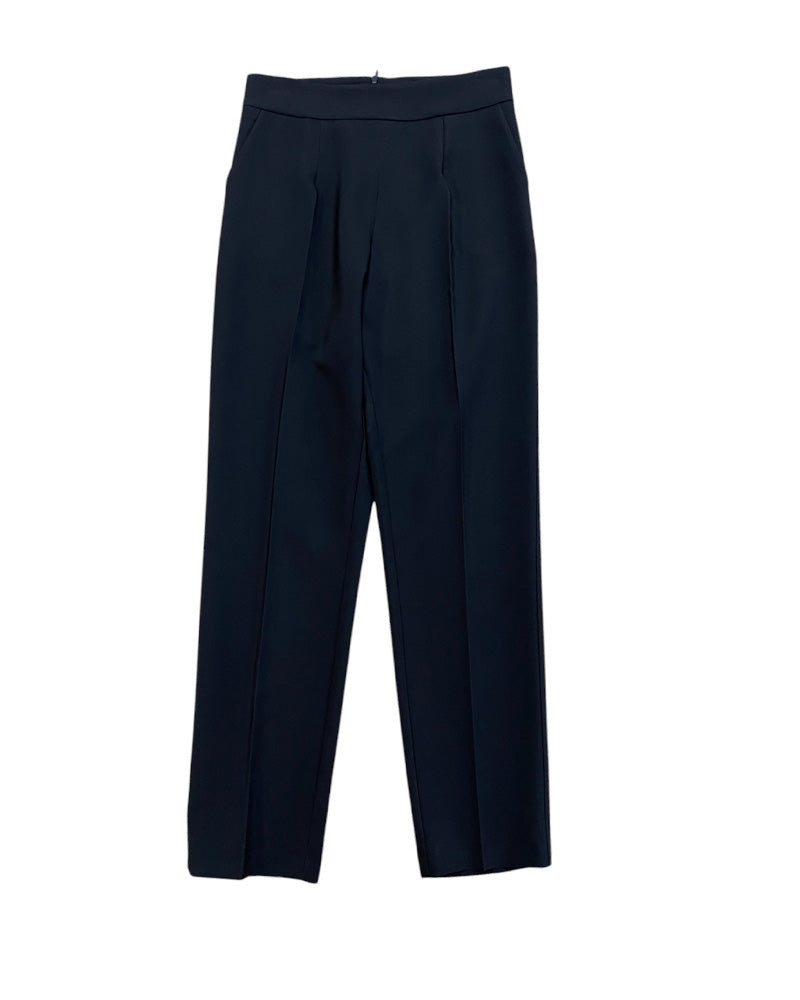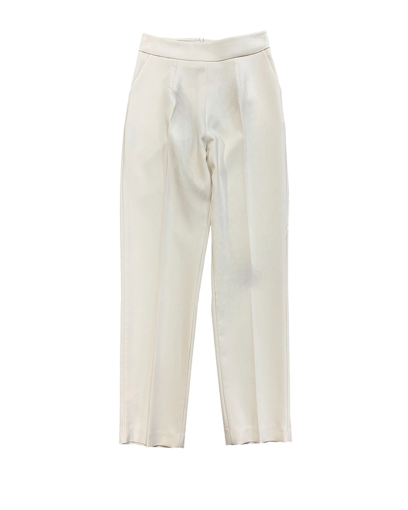 Pantaloni vita alta, chiusura con zip invisibile sul retro, tasca america, gamba dritta.