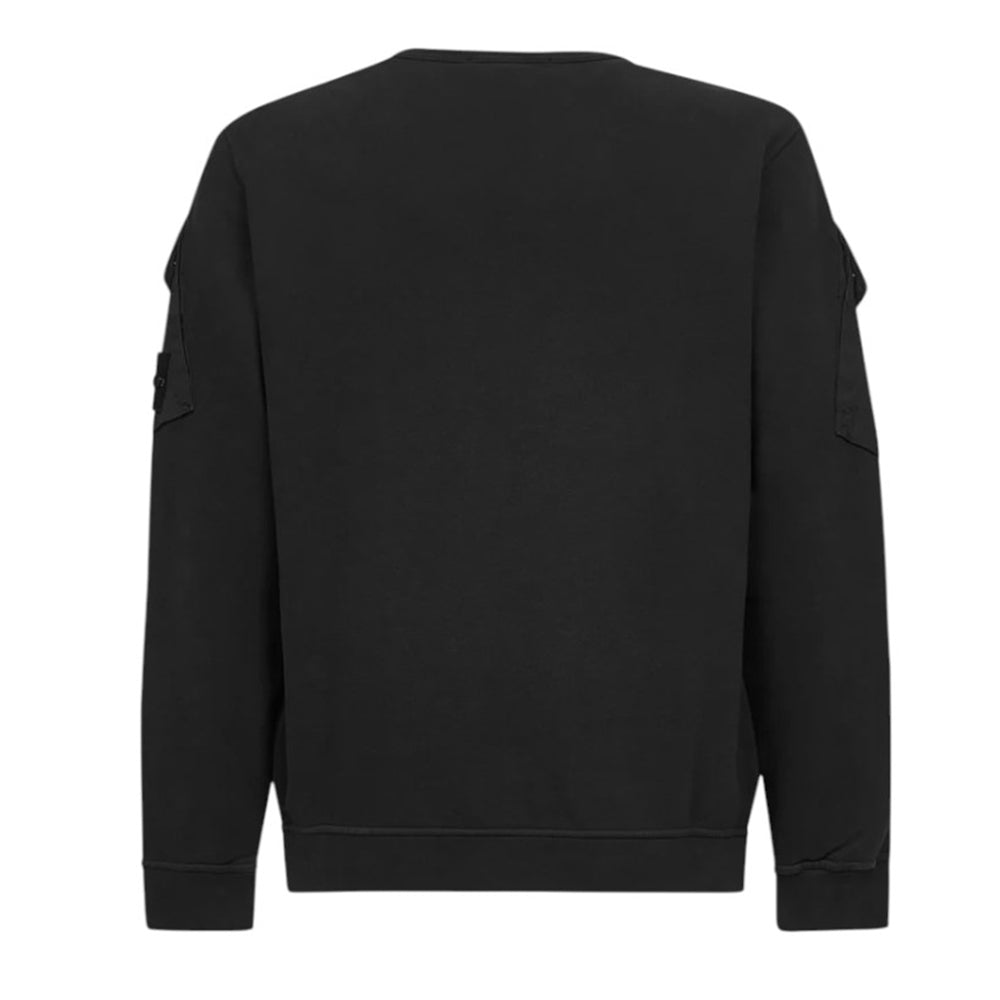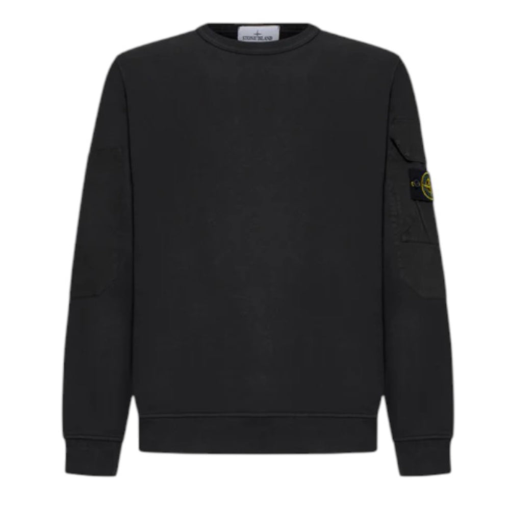 Felpa realizzata in cotone garzato, caratterizzata da collo rotondo, maniche lunghe, fodera in pile e finiture a coste. È decorata con inserti in popeline sulle maniche e Badge Stone Island.