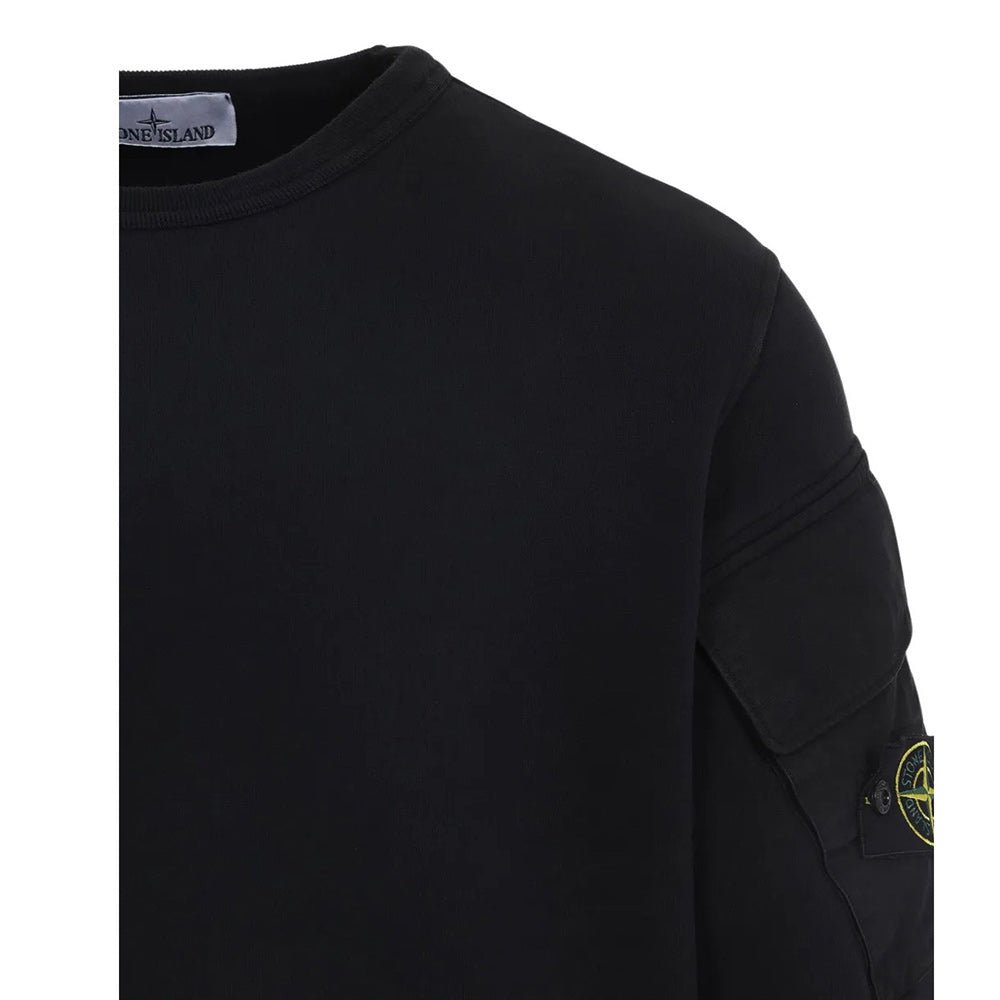 Felpa realizzata in cotone garzato, caratterizzata da collo rotondo, maniche lunghe, fodera in pile e finiture a coste. È decorata con tasche in popeline sulle maniche e Badge Stone Island.