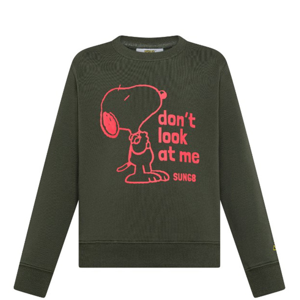 Sun68 Felpa verde girocollo con stampa Peanuts F45320V