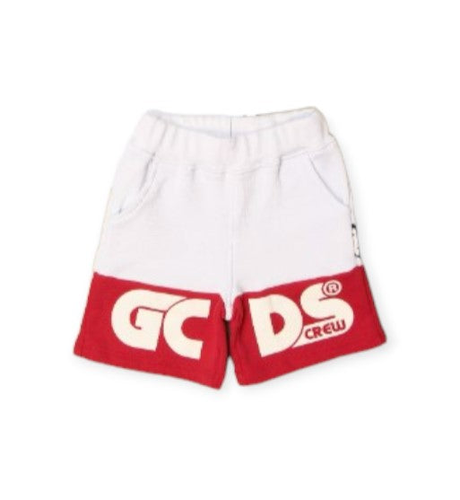 Baby Bermuda shorts with elastic waist, America pocket, contrasting band, printed logo.