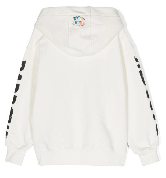 Long sleeve hoodie, symbol print on the chest and logo print on the sleeves, ribbed trims.