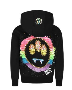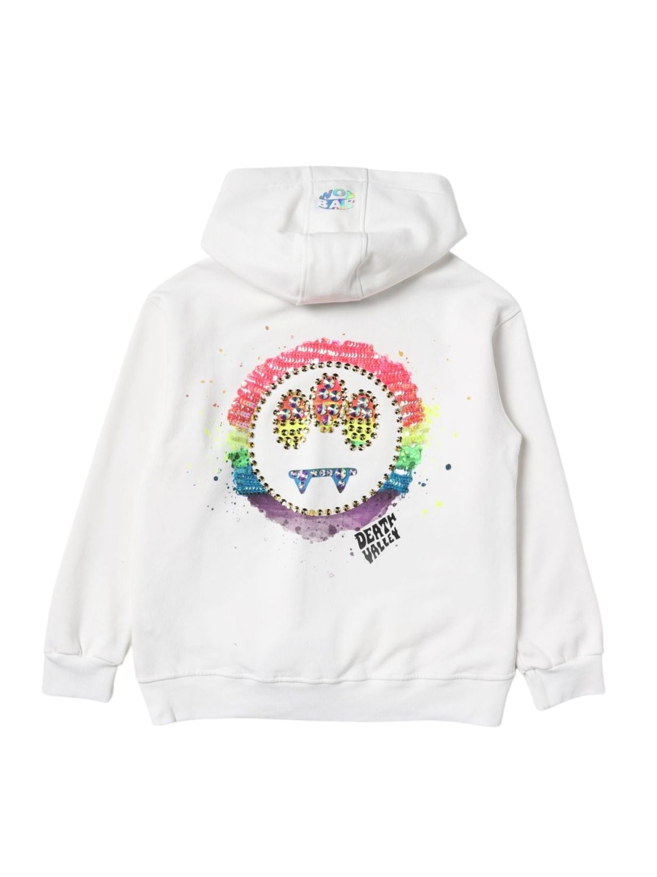 Long-sleeved hoodie, rhinestone logo and symbol application, ribbed hem and cuffs.
