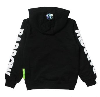 Long sleeve hoodie, symbol print on the chest and logo on the sleeves, ribbed finish.