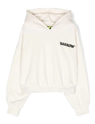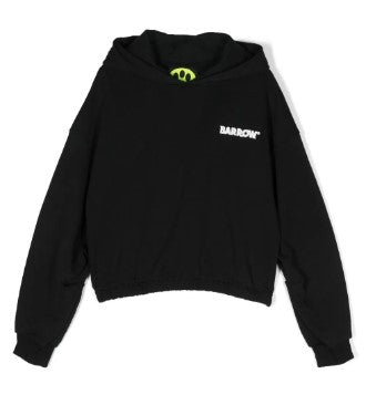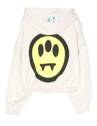 Long-sleeved hoodie, cropped model with elastic waist, logo print on the chest and smile print on the back,