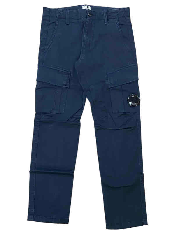 Cotton trousers, cargo style, round pocket, back pocket, button and zip fastening.