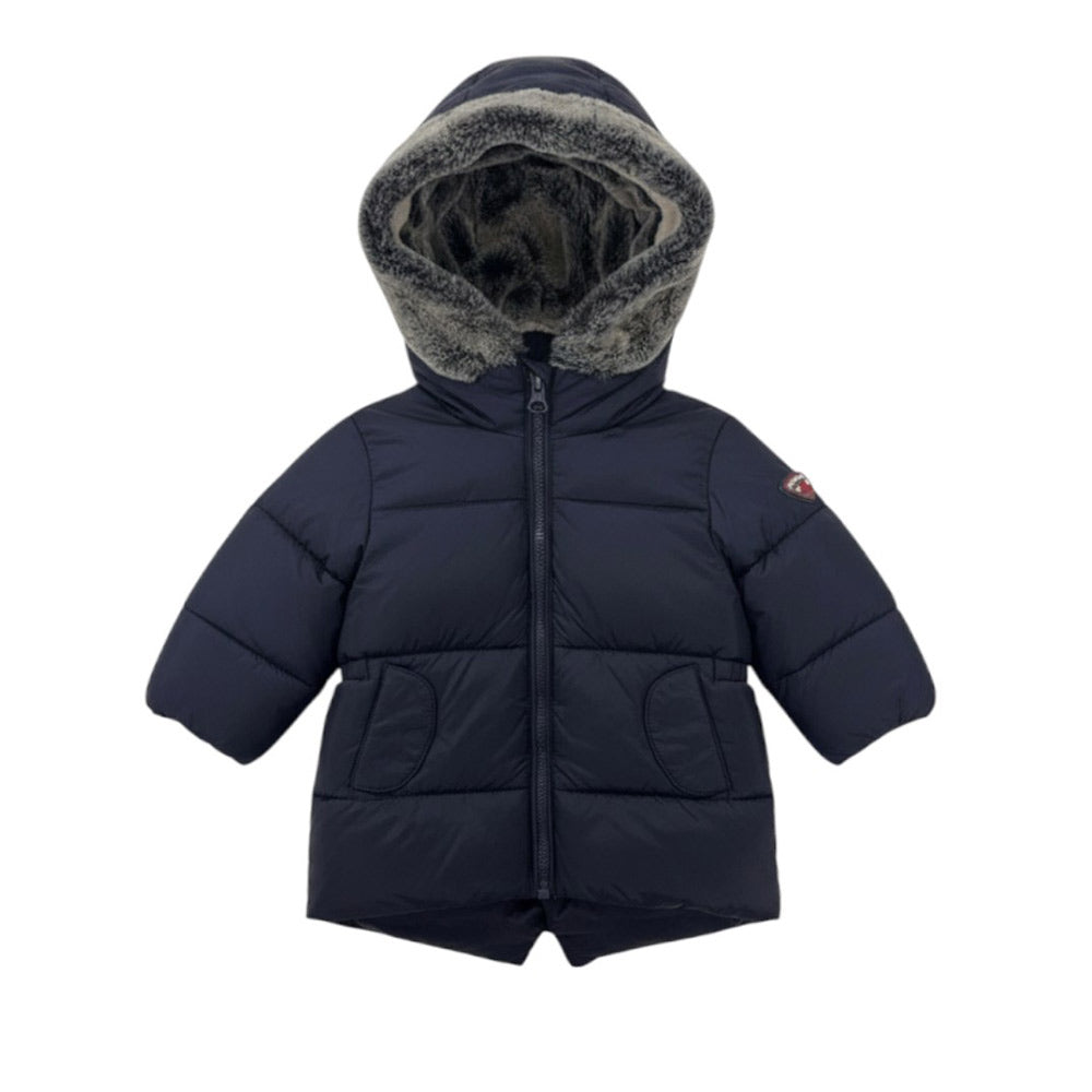 Quilted jacket, America pocket with flap, zip fastening, hood with fur.