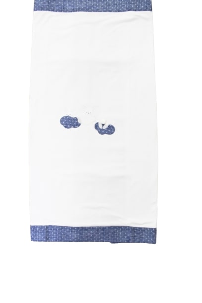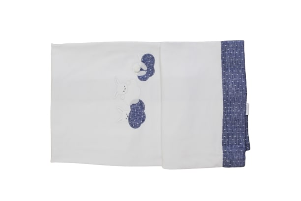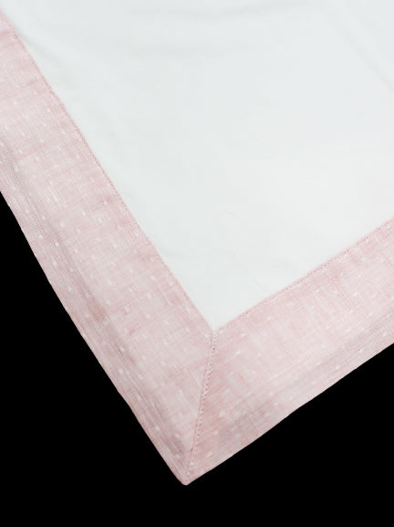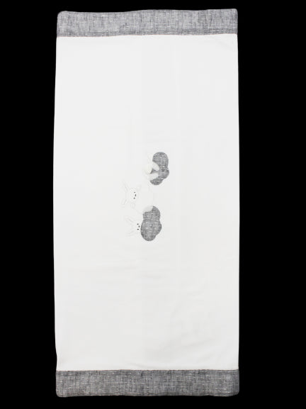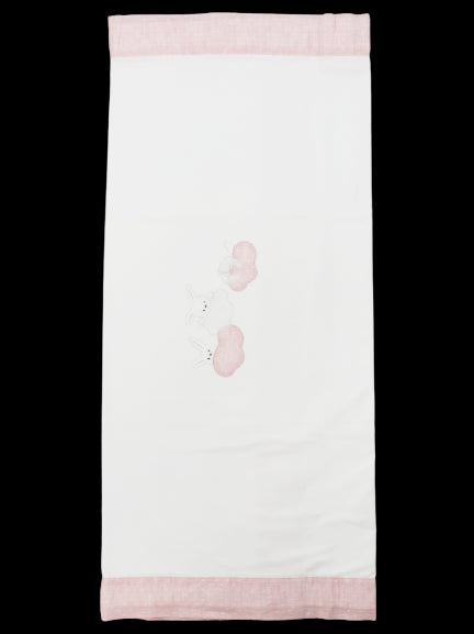 The Owl Newborn Blanket white with pink border in pure linen with polka dot pattern. Central detail represented by bunnies.