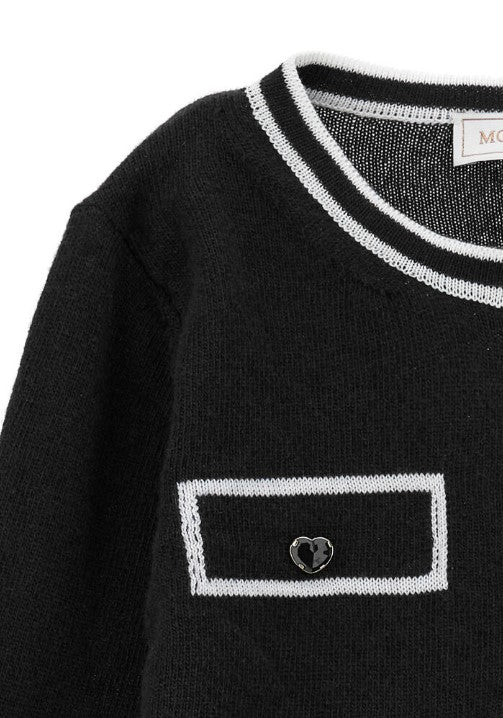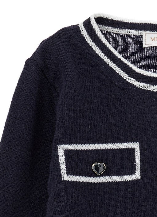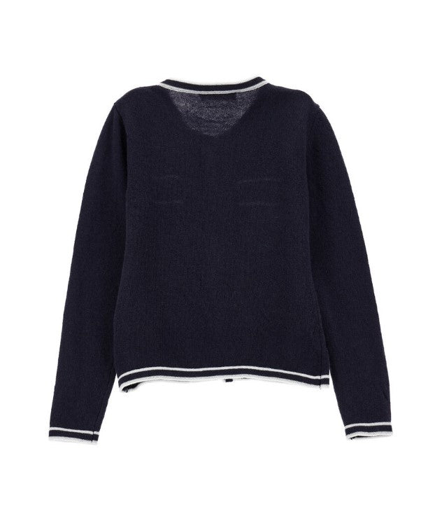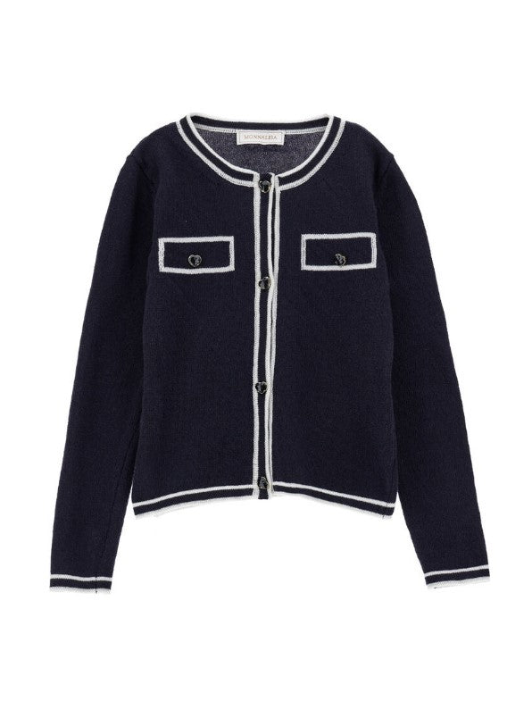 Cardigan sweater with jewel button fastening, decorative pockets on the chest.