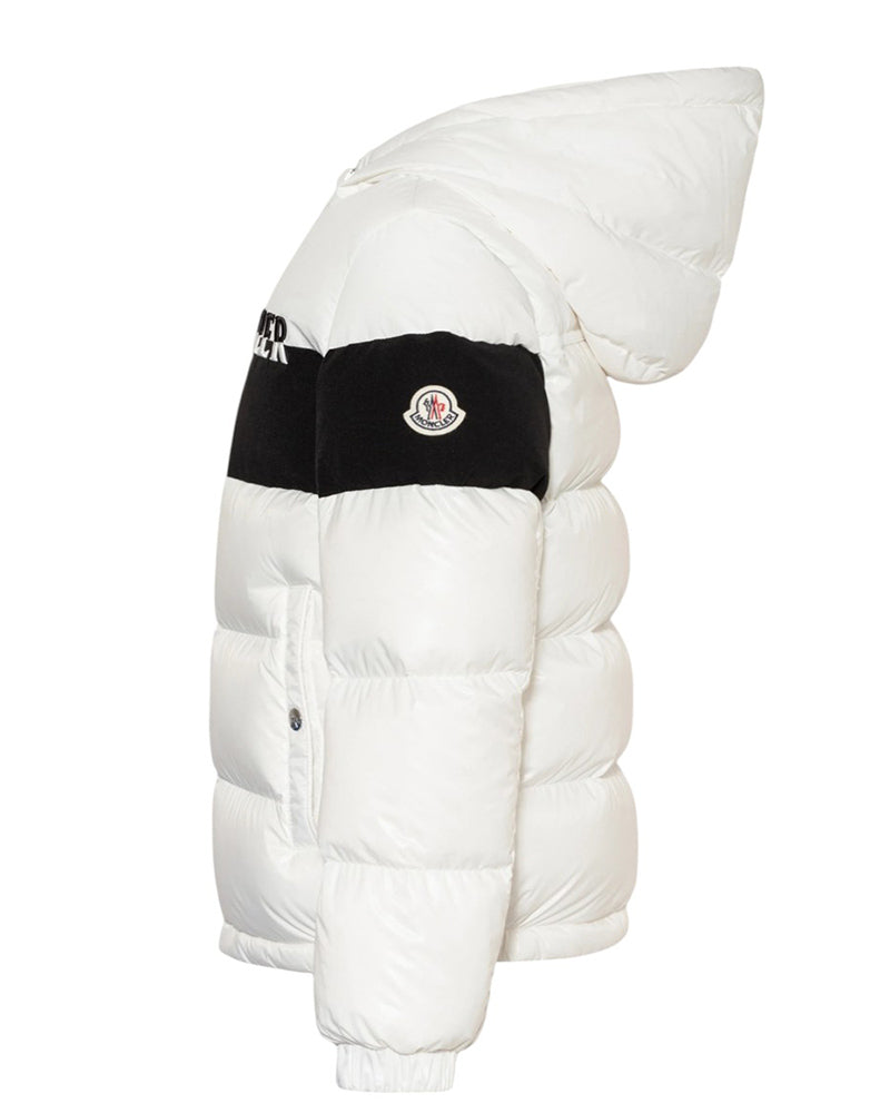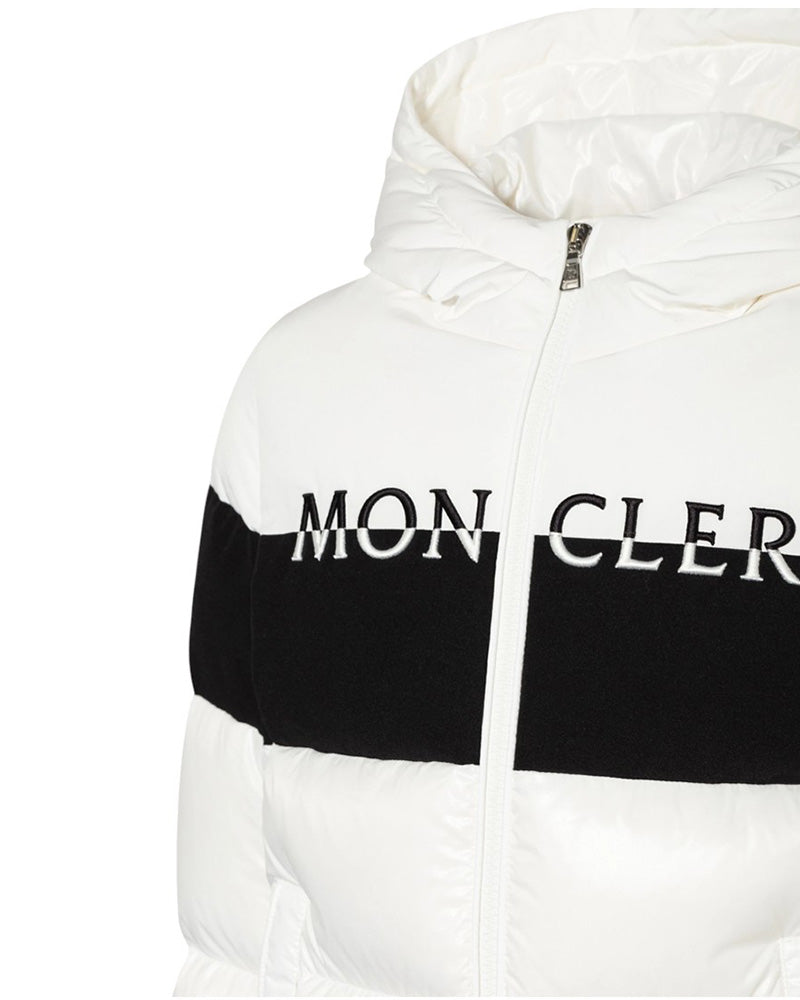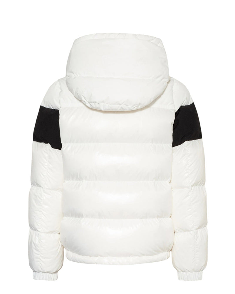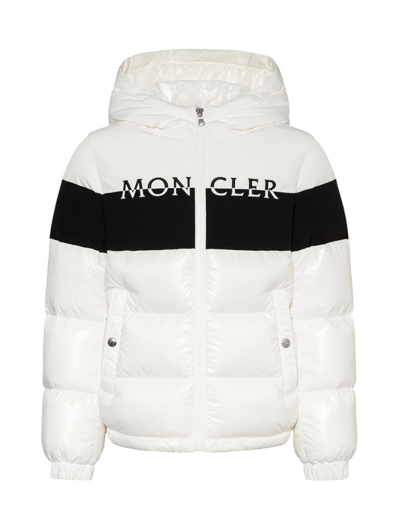 Quilted jacket, fixed hood, zip fastening, welt pockets, embroidered logo.