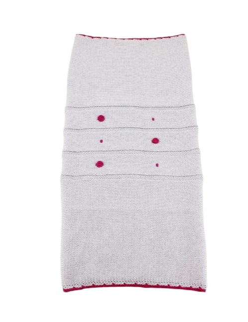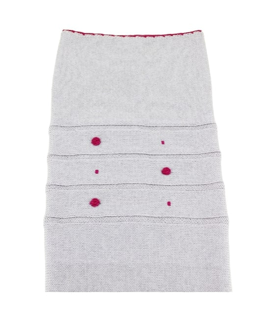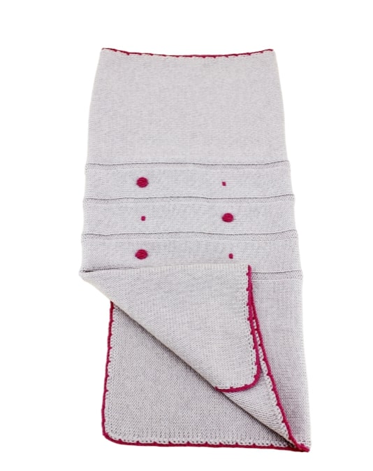 Little Bear dove grey blanket with fuchsia embroidery and border.