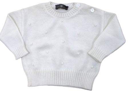 Crew neck sweater, wool applications, buttons on the shoulder.