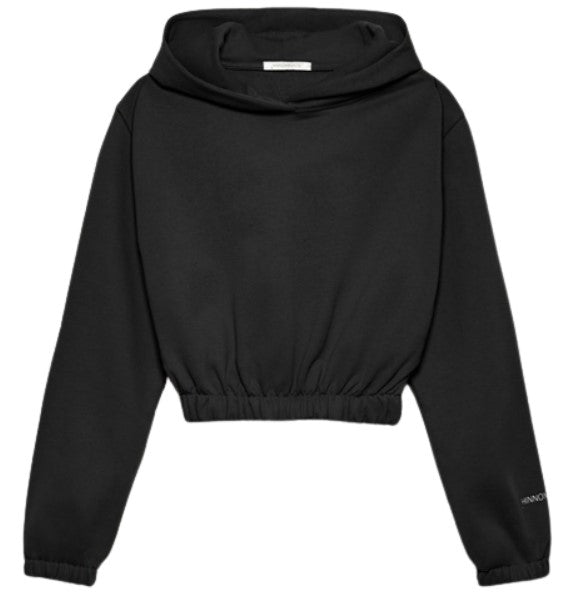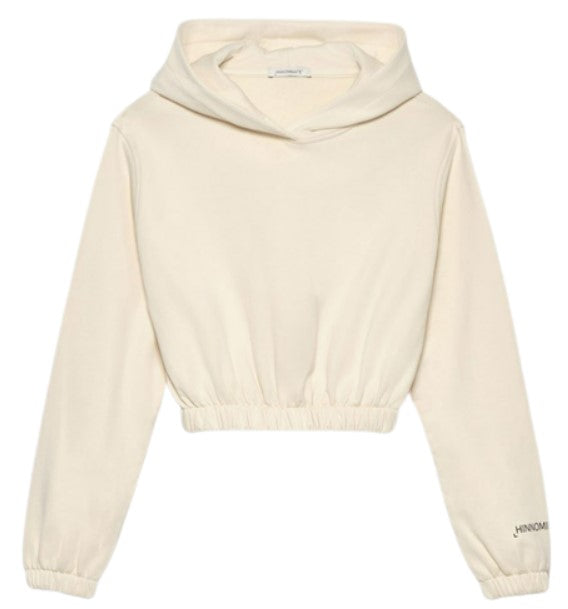 Girls' long-sleeved hoodie, cropped fit, contrasting logo print on the sleeve, ribbed cuffs and hem.