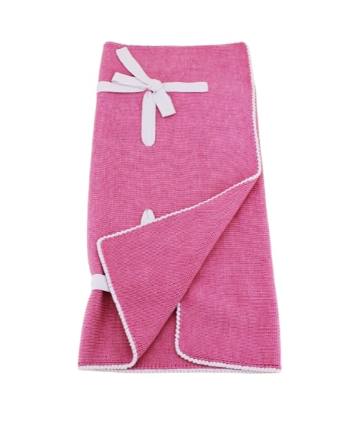 Little Bear blanket with pink central ribbon.