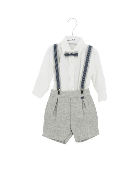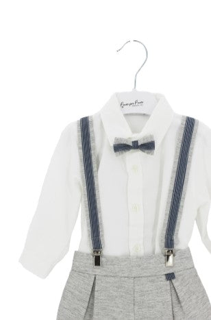 Ponto Por Ponto set consisting of a franella shirt and trousers with a gabardine bow tie. Model with braces.
