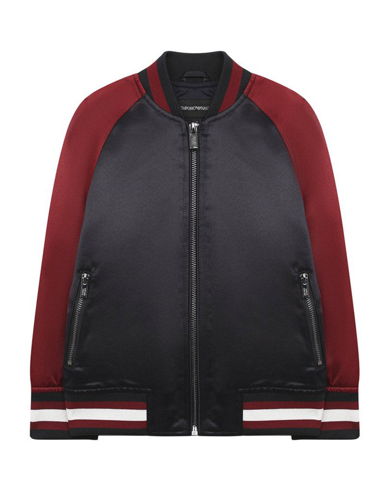 This Armani college jacket is perfect for kids who want a sporty yet elegant style. With its zip closure and zip pockets, your kids will always be safe and stylish. With the distinctive logo on the back, the jacket also adds a touch of class to the look.
