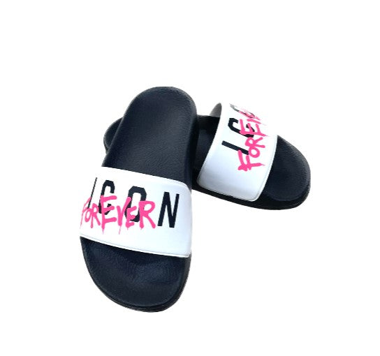 Dsquared2 slippers with ICON logo and fuchsia writing.