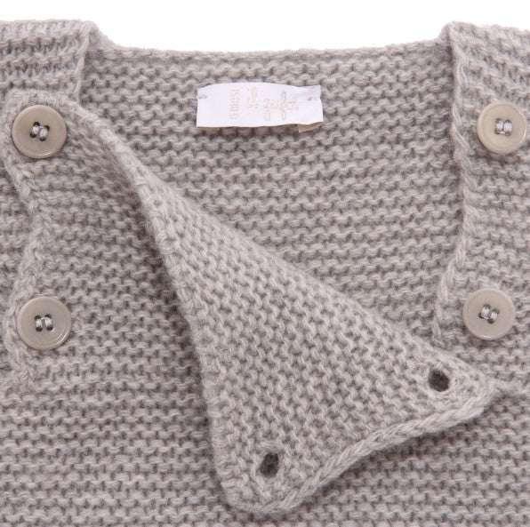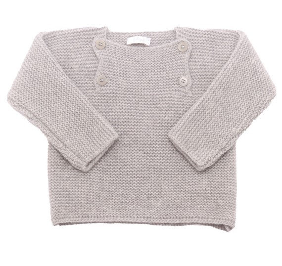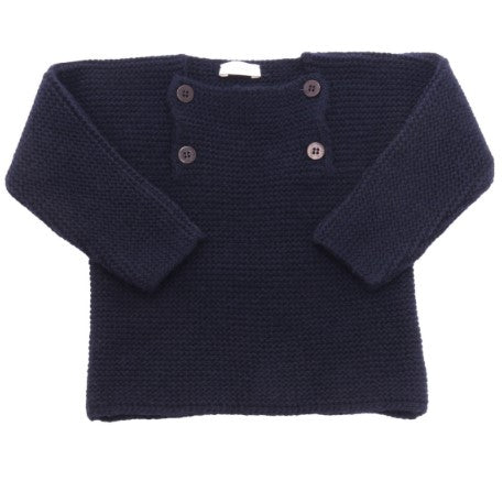 Wool sweater, with square neckline, decorative buttons on the front.