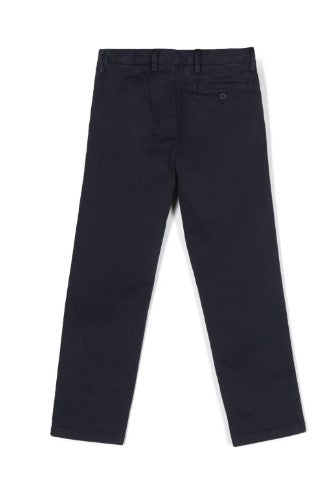 Classic trousers, with patch pocket on the back, button and zip fastening on the front.