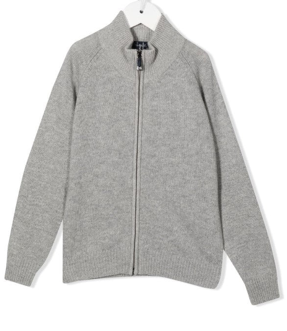 Wool cardigan sweater, zip fastening on the front.