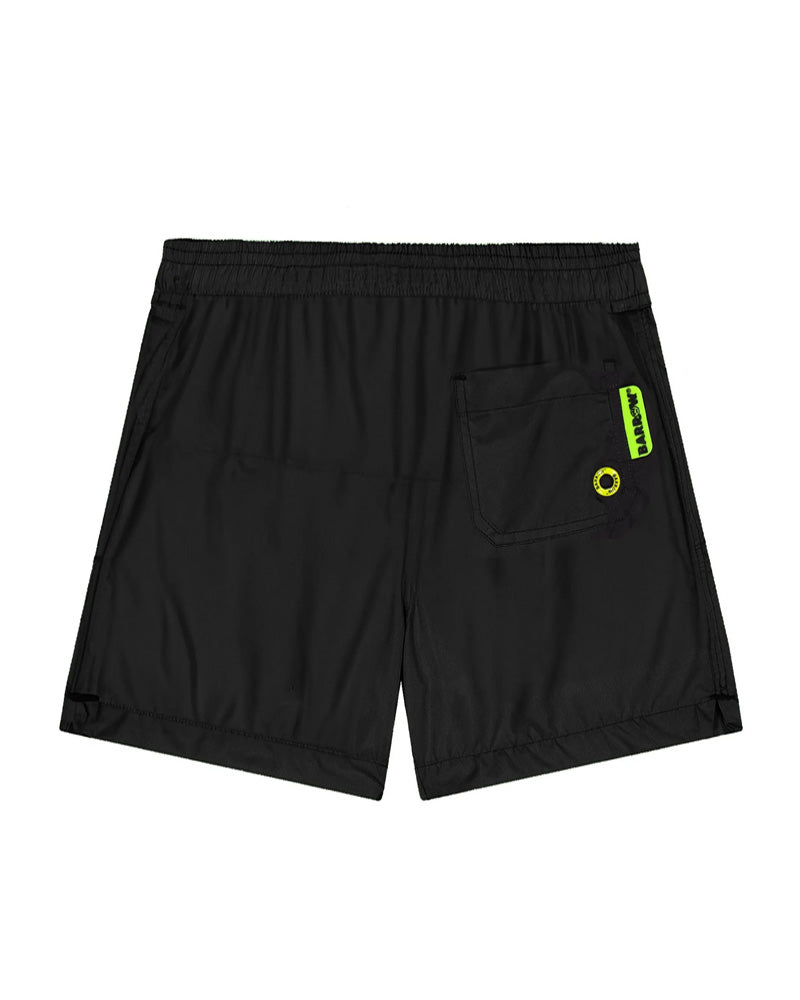 Costume modello boxer con vita elasticizzata e coulisse, logo stampato in contrasto.