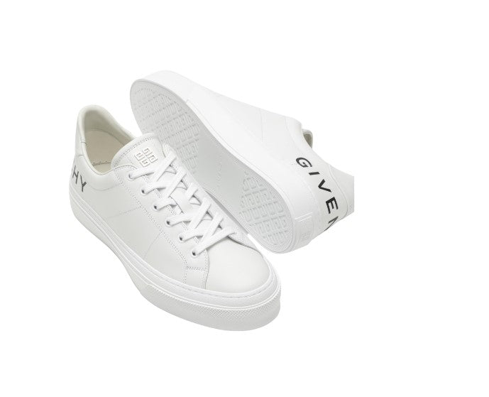 Givenchy sneaker in smooth white leather, featuring rounded toe, maxi logo print, lace-up fastening and rubber sole.