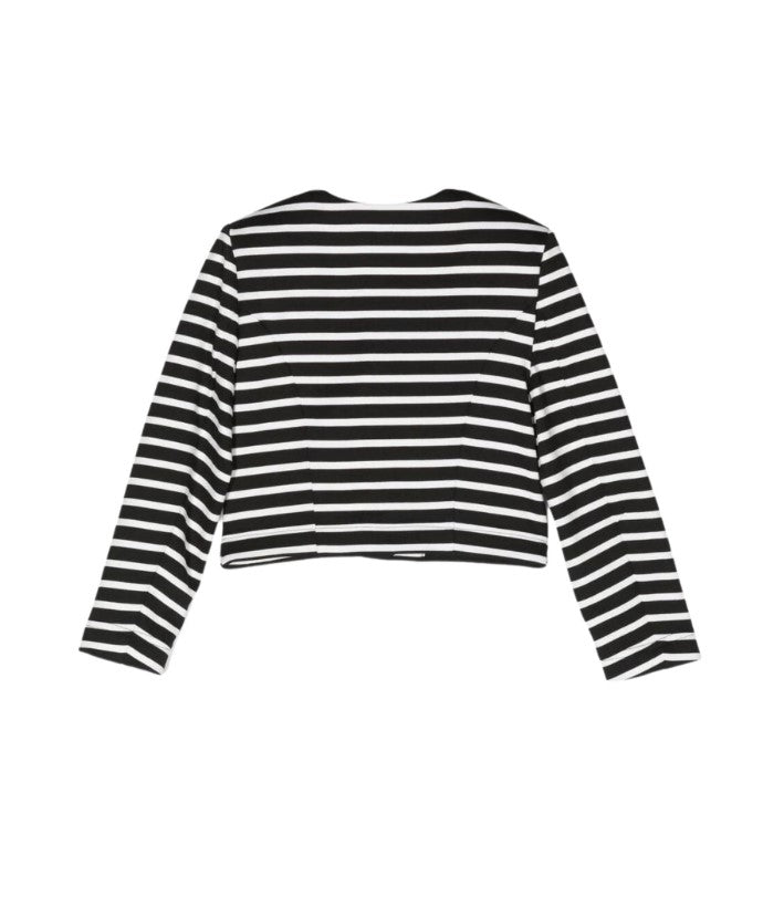 Crew neck jacket, logo press stud fastening, buttoned pockets.