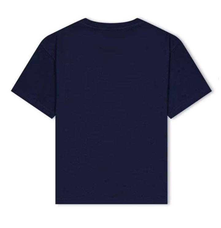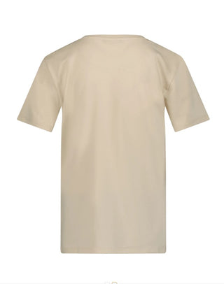 Crew neck T-shirt with short sleeves, contrasting two-tone printed logo on the front.