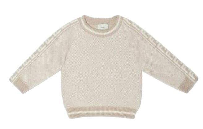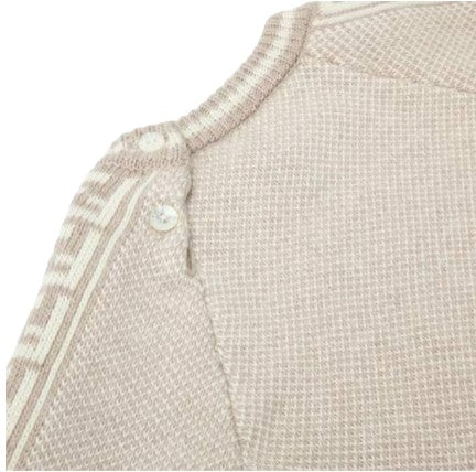 Crew neck sweater, with buttons on the shoulder, logo on the sleeves.