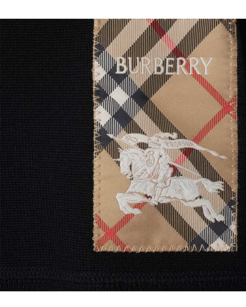 Burberry Cardigan nero in lana con etichetta Check 8100541