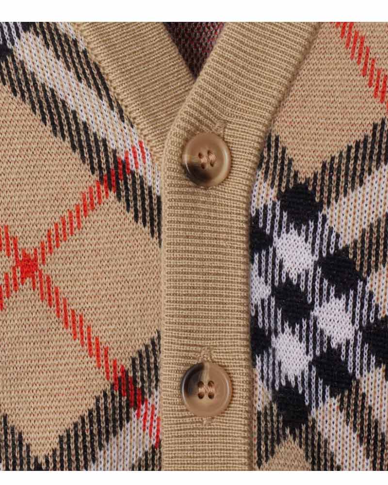 Burberry Cardigna beige in lana con fantasia Check 8104312