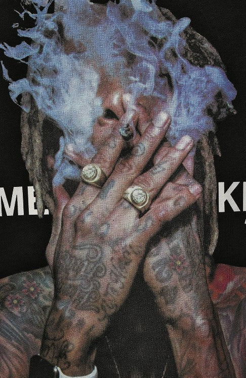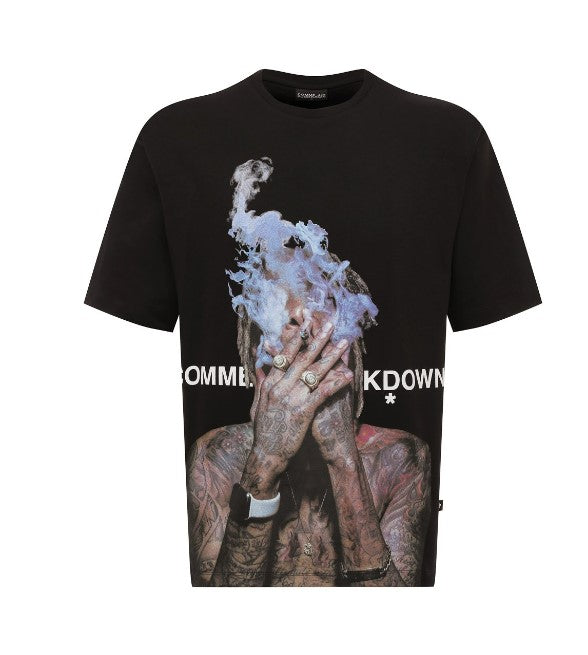 Crew neck T-shirt with short sleeves and maxi print on the front.