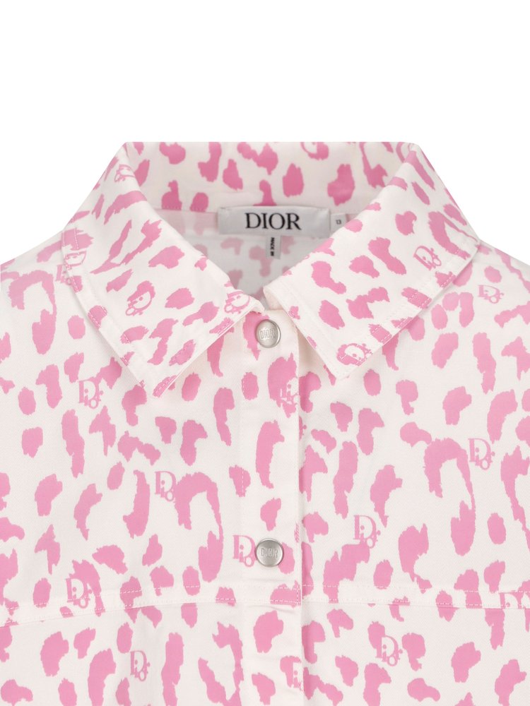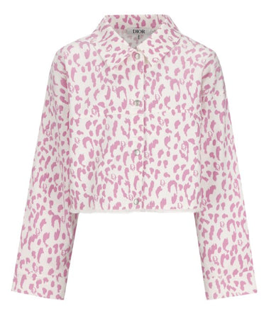 Cropped cotton denim jacket, animalier pattern with all-over logo detail, front fastening with press studs.