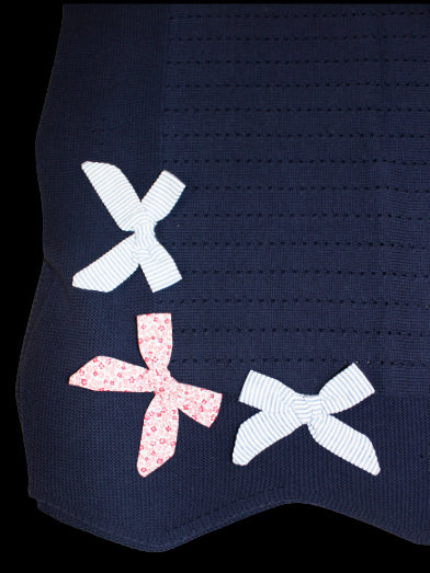 Doctor Kids baby blanket with fabric bows sewn into one corner. Measurements: 90cmx87cm