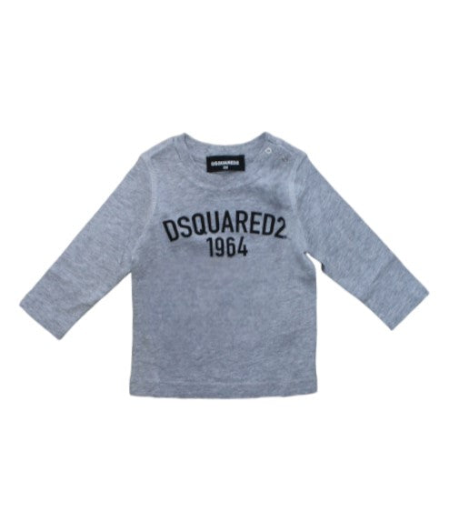 Crew neck, long sleeve T-shirt, logo printed on the front, snap button fastening on the shoulder.