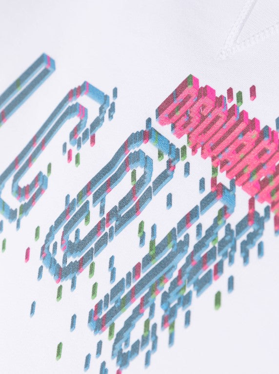 Crewneck sweatshirt with half water-based and half rubberized logo print.
