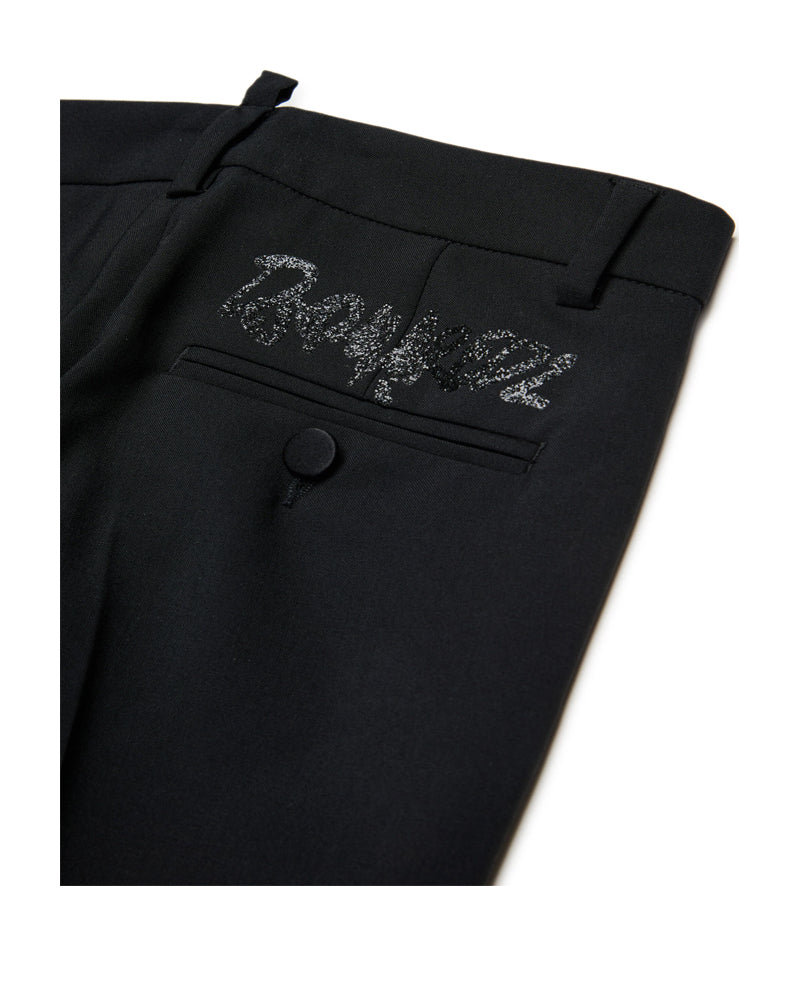 Pantaloni formali in fresco di lana stretch. Pieghe fronte-retro. Logo Dsquared2 con strass applicati sul retro. Tasche a filetto anteriori e con bottoni posteriori. Foderati internamente. Perfetti per party serali ed occasioni speciali.