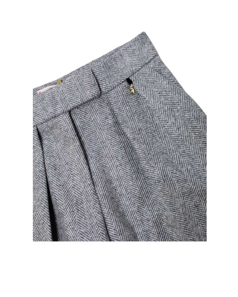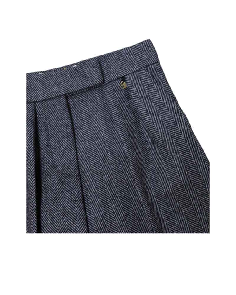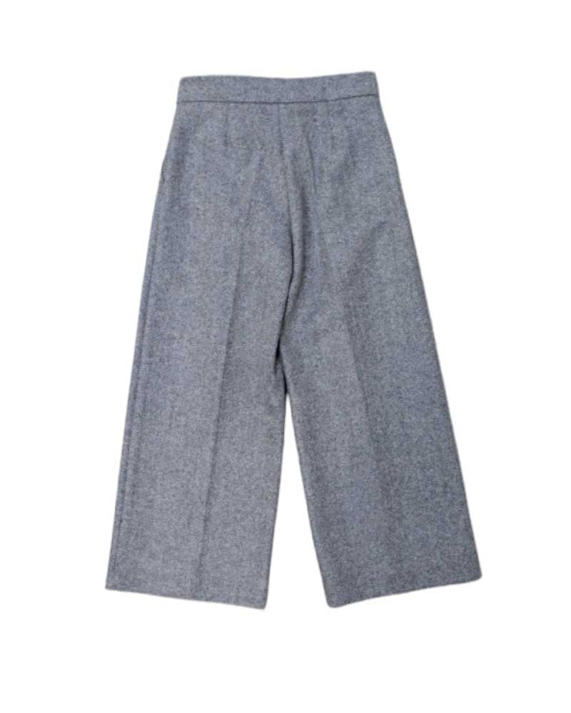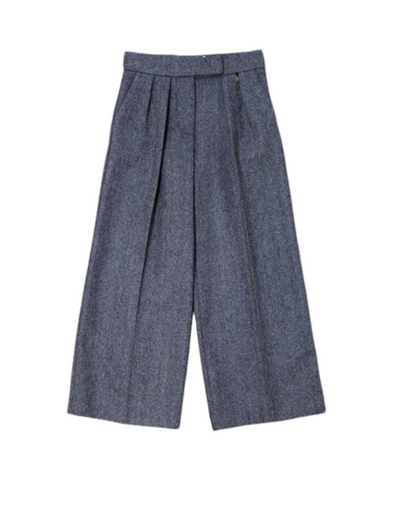 Wool blend palazzo trousers, front pleats, hidden front zip and hook fastening, side American pockets.