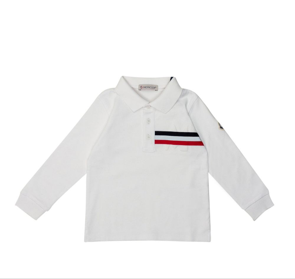 Cotton pique polo with long sleeves, front button placket. Embossed symbol on the chest.