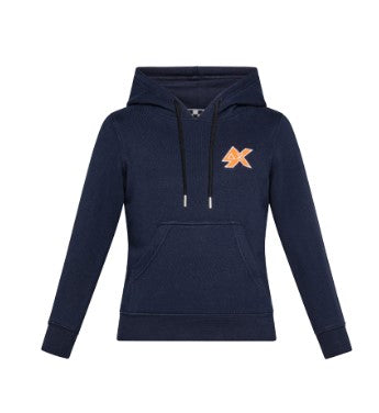 Hoodie, kangaroo pocket, ribbed cuffs and hem, contrasting embroidered logo on the front.