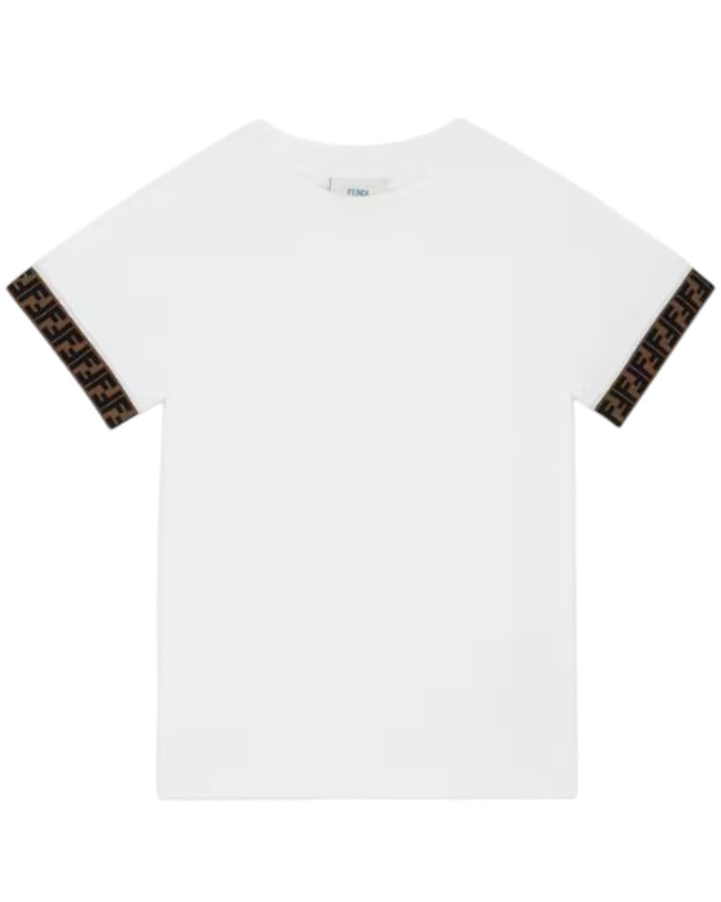 T-shirt realizzata in jersey di cotone, caratterizzata da collo tondo, maniche corte con nastro logo FF color tabacco e orlo dritto.