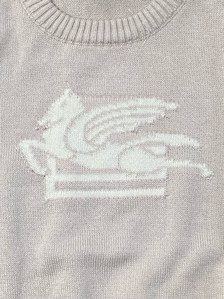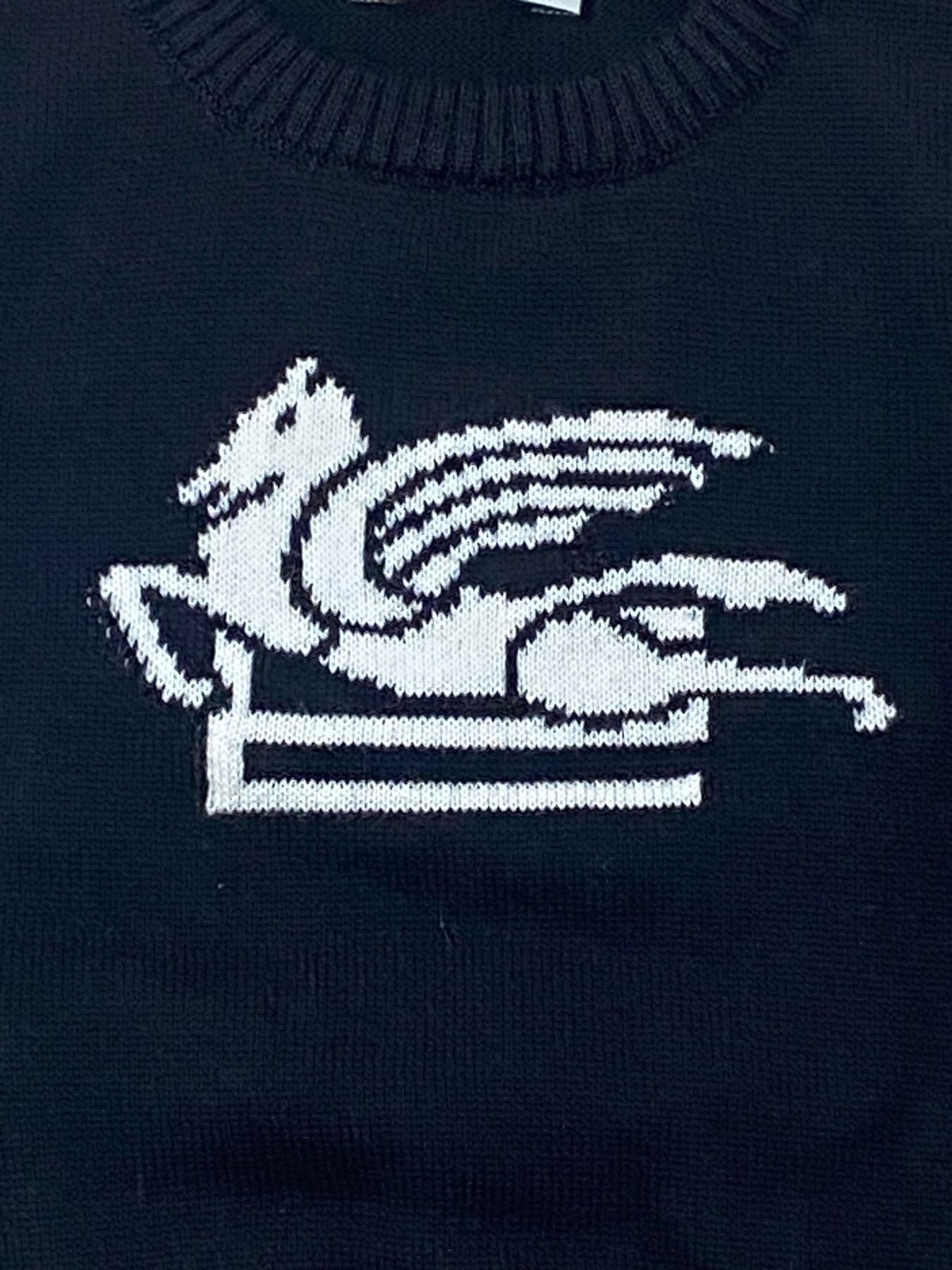Crew neck sweater in light cotton fabric, ribbed finishes, button fastening on the shoulder.