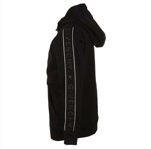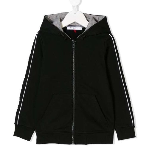 Zip-up hoodie, front pockets, logo applied on the sleeves.